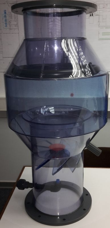 - Aerosolabscheider (Demister) zwischen beiden Paketen zur Verbesserung der Abscheidung feinster Tröpfchen.